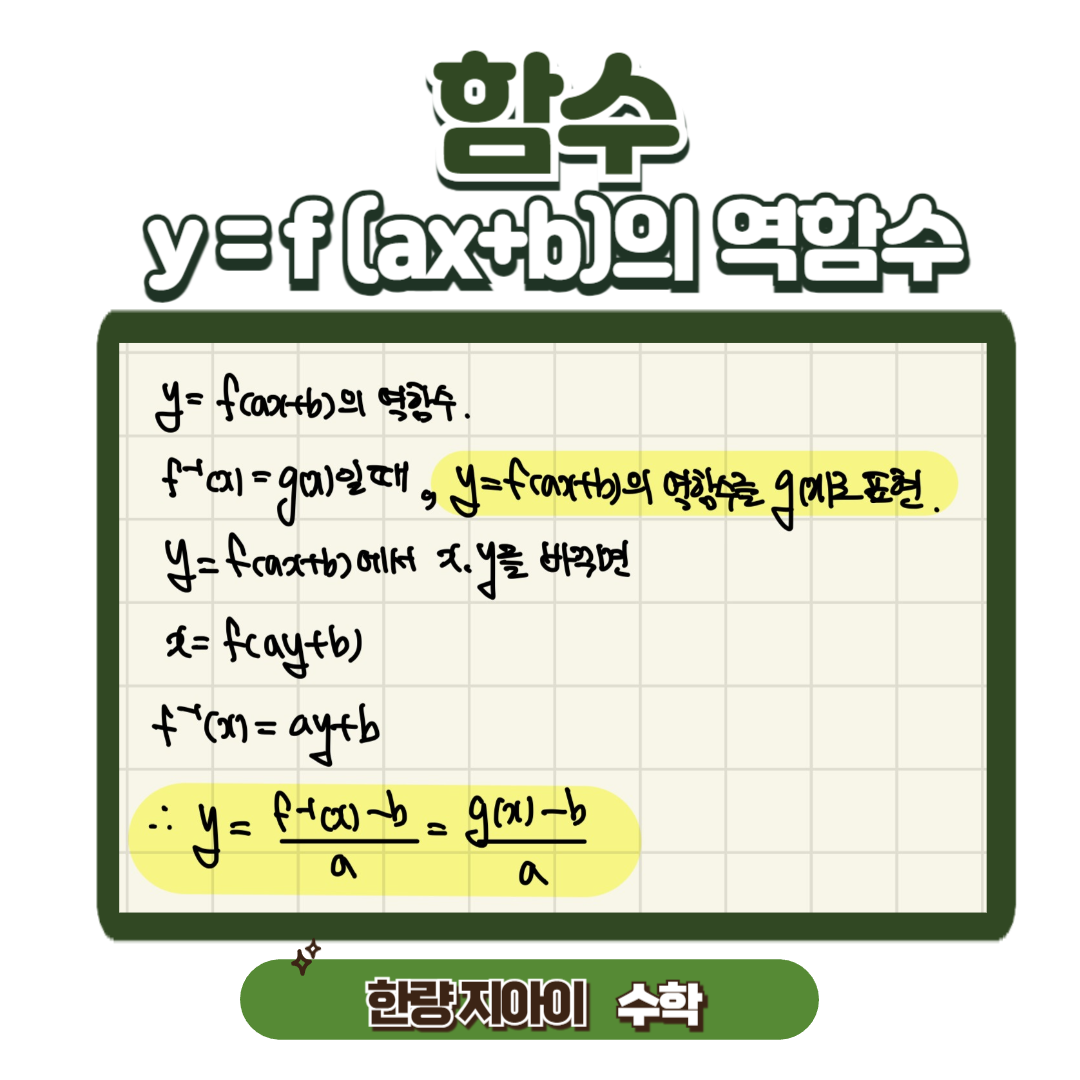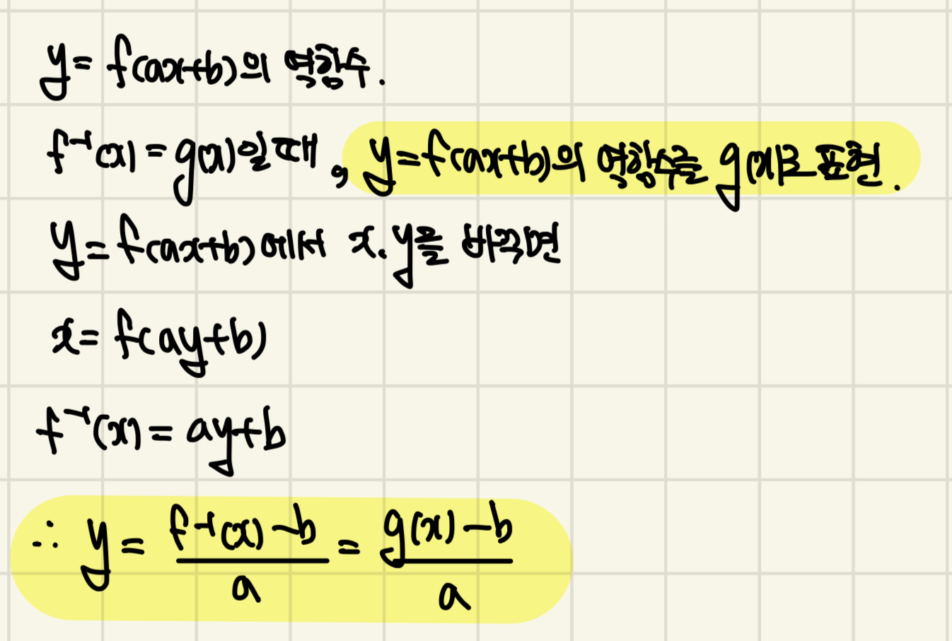 기하적으로 본다면 y=f(x)에, x대신 ax를 대입후, x축 방향으로 -b/a만큼 평행이동 시킨 그래프이므로 이걸 반영해서 써도 됩니다. 역함수 입장에서는 이 과정을 반대로 하면 되겠죠?