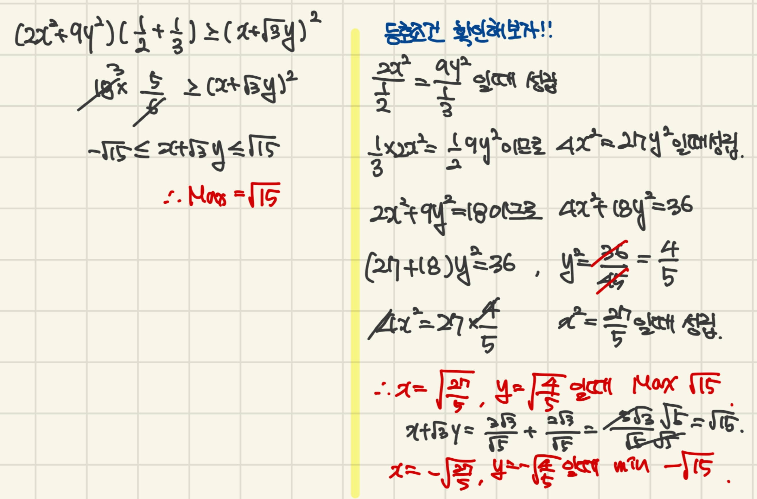 코시 슈바르츠 부등식의 등호 조건을 같이 복습하는 것도 잊지 마시구요.!