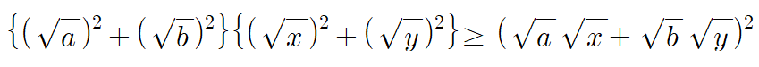 이 식에서 a,b,x,y>0이므로 식을 좀 더 간단하게 써보면,