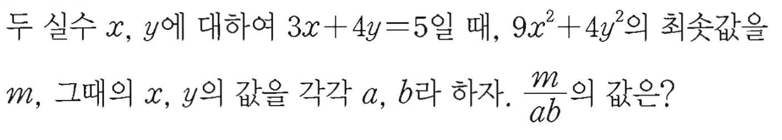 오늘은 코시 슈바르츠 부등식을 이용해서, 산술/기하보다 더 편하게 문제를 풀어볼게요!