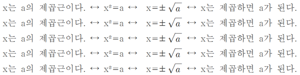 우선 외워야 하는 내용부터 살펴봅시다. 제곱근은 처음 배우는 용어이기 때문에 정의를 명확하게 알아야 합니다.
