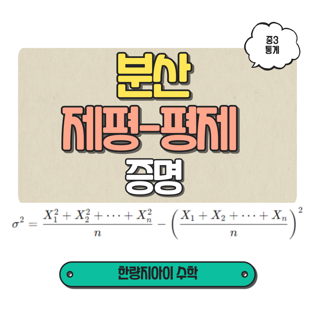 분산은 (제곱의 평균) - (평균의 제곱) = 줄여서 제평평제라고 외우셔도 됩니다.