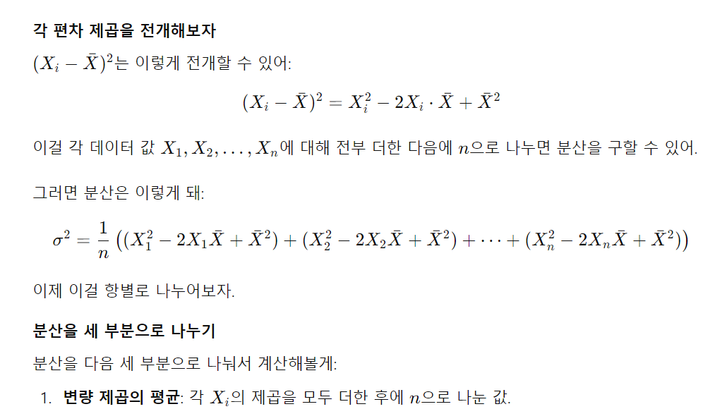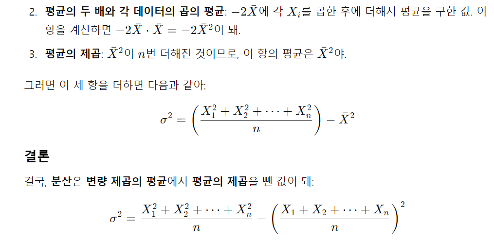 분산은 (제곱의 평균) - (평균의 제곱)이기도 합니다.