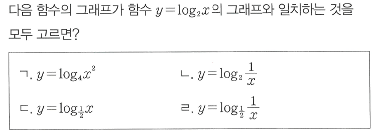 정답 : ㄹ (문제에서 같은 함수를 물어봤으므로 ㄹ만 답임. 평행이동/혹은 대칭이동해서 같은 함수가 되는 거면 ㄴ,ㄷ도 됨)
