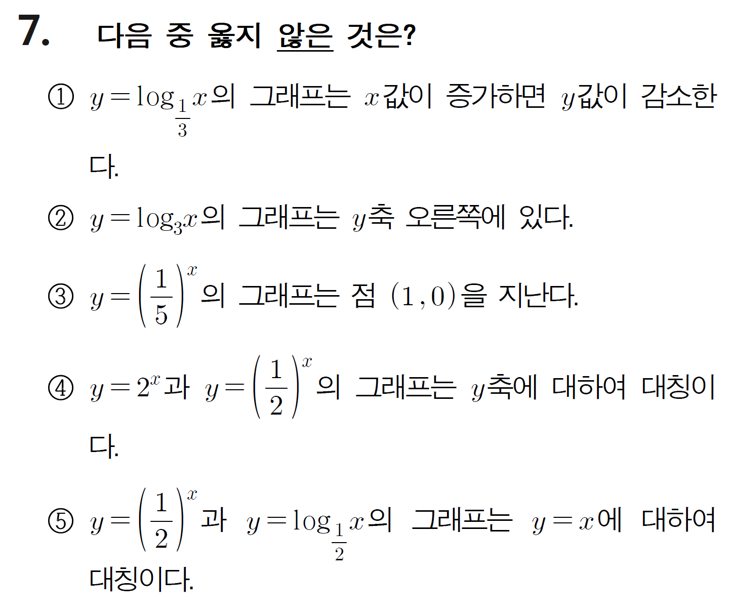 쉬워서 시험에 꼭 나오는데 은근 오답률이 높은 지수함수, 로그함수 설명문제 모음입니다.