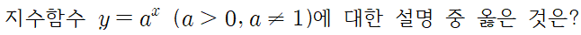 ② 치역은 양의 실수 전체의 집합이고 점 (1,a)를 지난다.