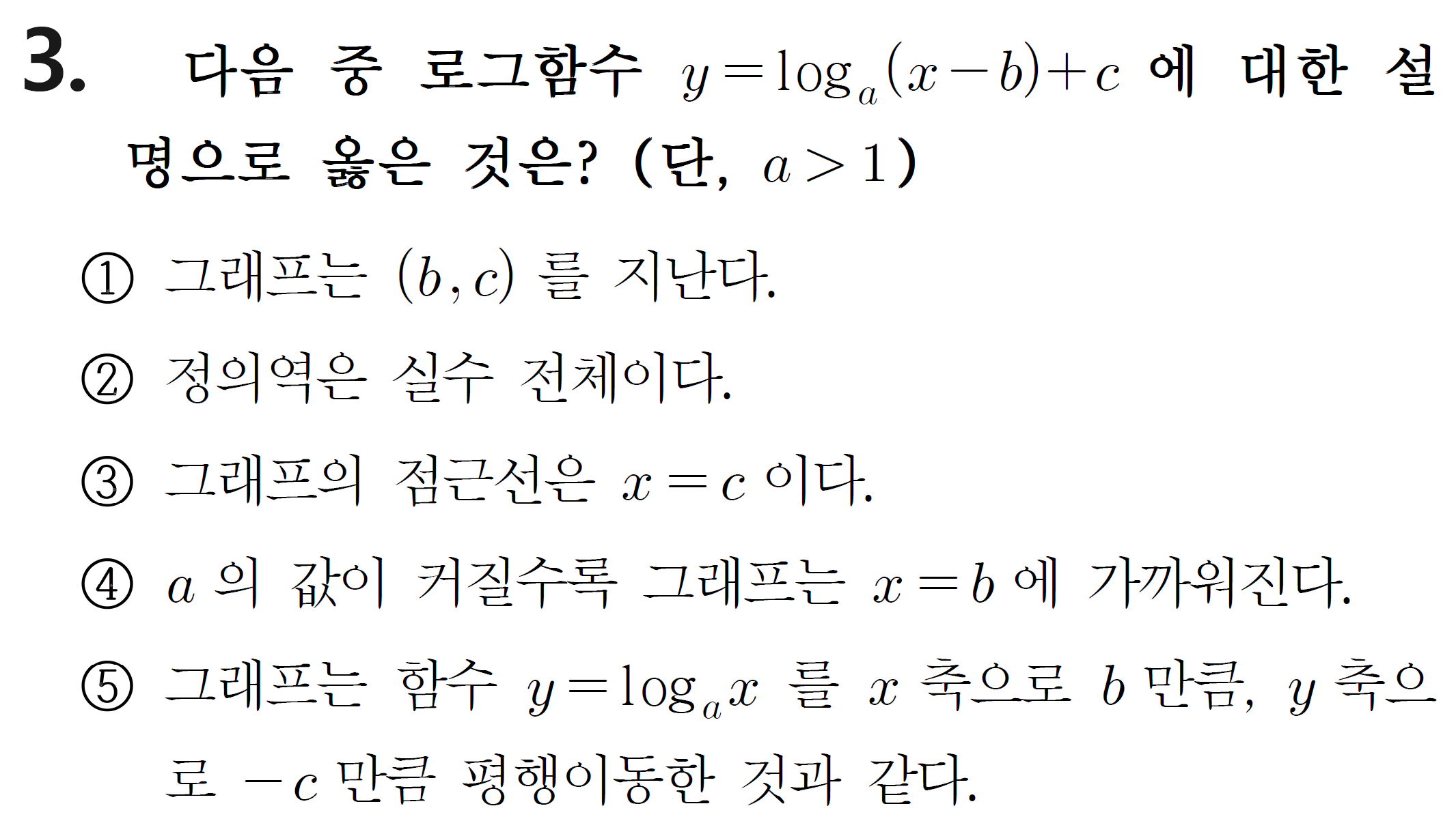 ② x, 정의역은 x>b인 실수이다.