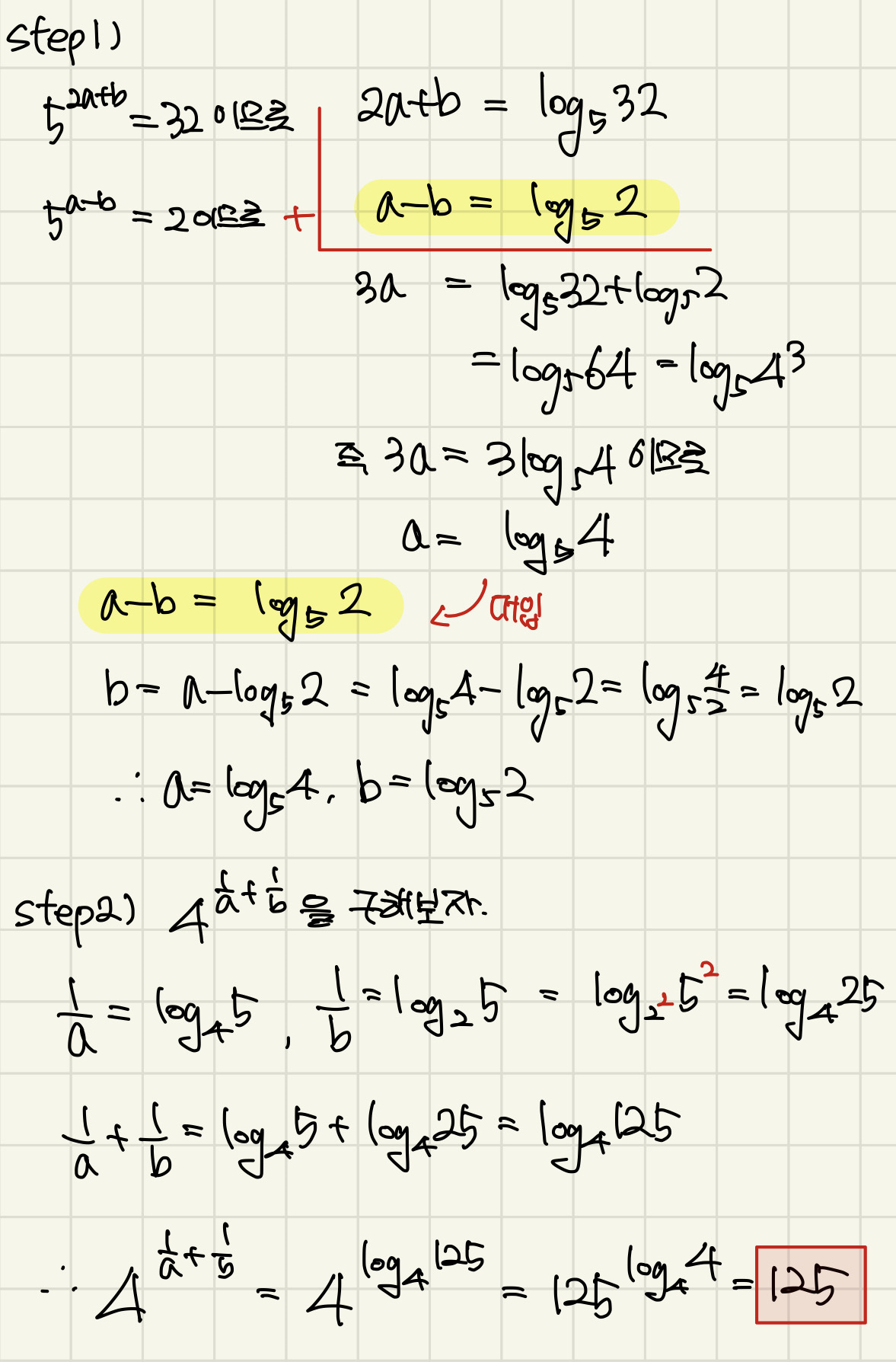 구해야 하는 밑이 25니까 5로 정리해줍니다.