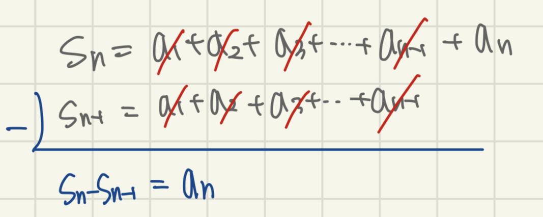 따라서 첫번째 항의 경우에는 차로 쓰지 않고 a1=S1으로 정의해서 새로 써줍니다.
