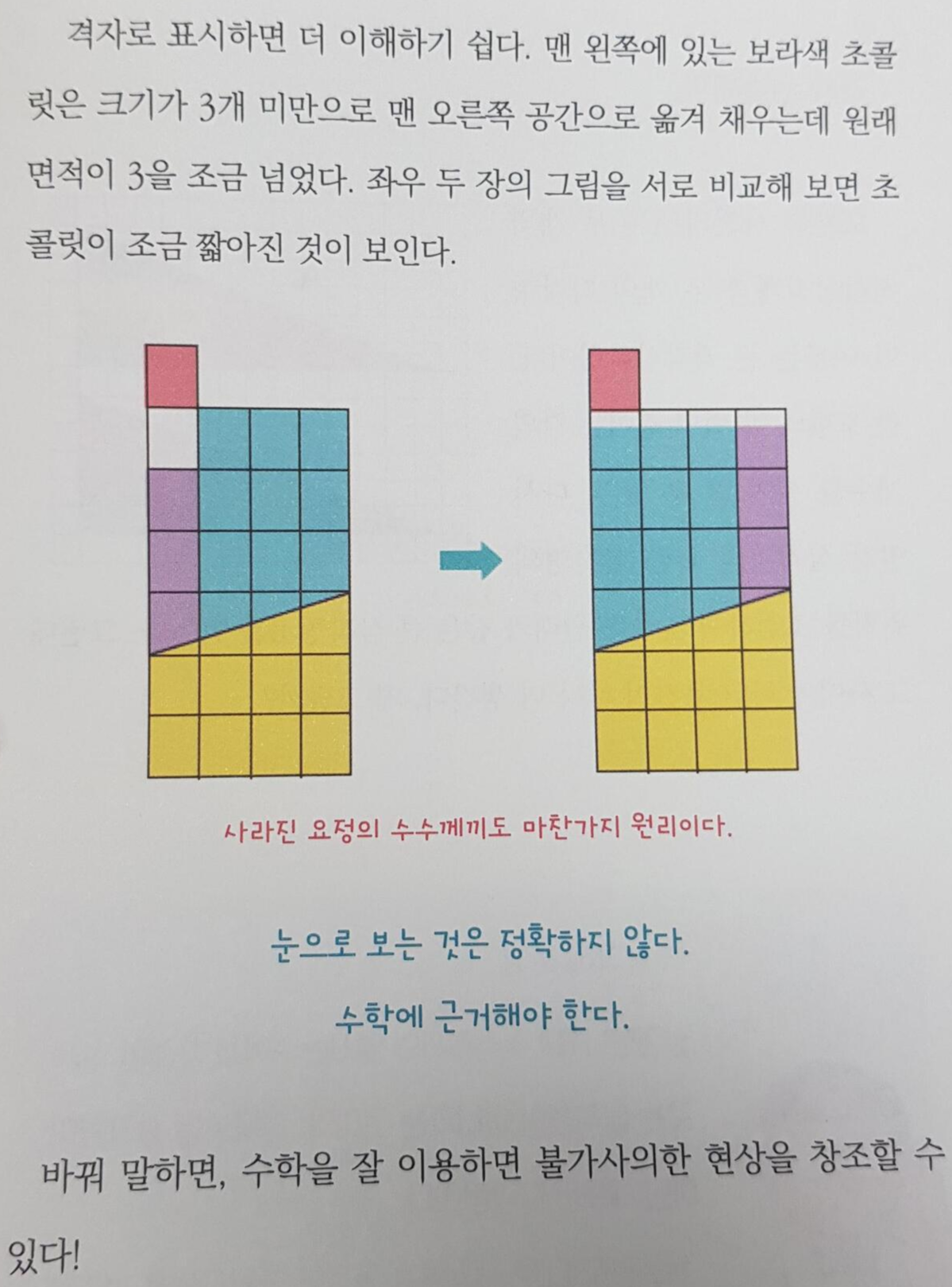 아 그리고 사라진 초콜릿 문제도 초등학교 수업시간에 하면 폭발적인 반응이 나올 것 같아요.ㅋㅋ 무한 재생되는 초콜릿 매직!!