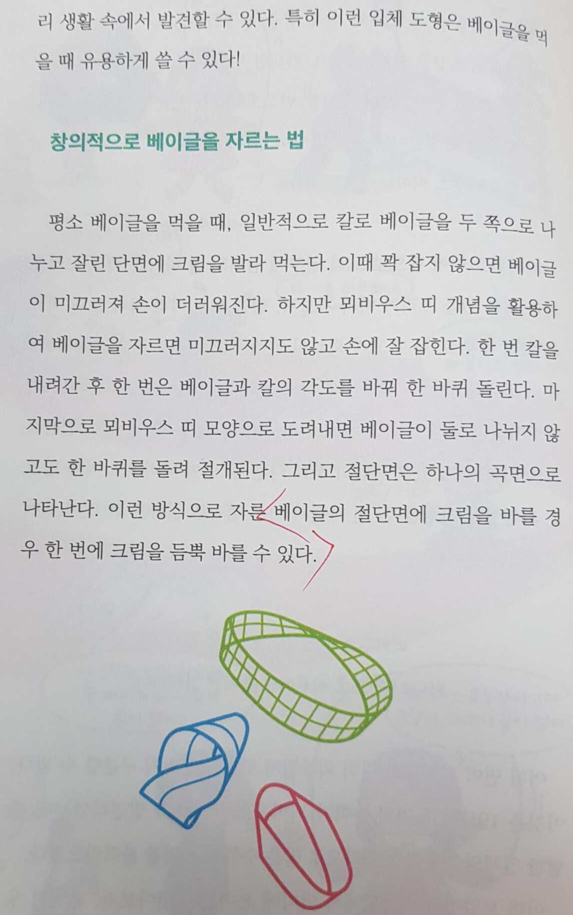 아, 그리고 중간중간 QR 코드도 들어있어요. 창의적으로 베이글 자르는 법에서는 뫼비우스의 띠를 도입했는데, 아무래도 이런 건 글로 보는 것보다 영상으로 보는 게 좋죠 :-)