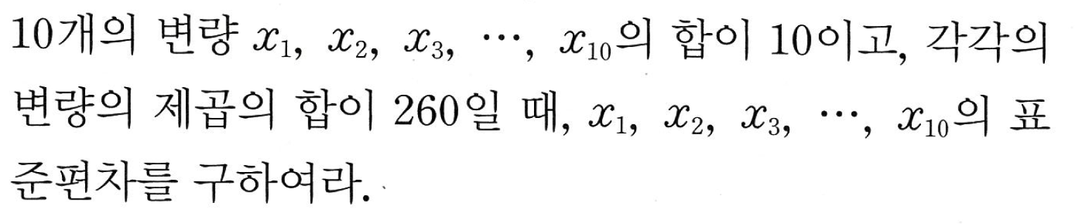 오늘은 저번에 배웠던 분산 중 제평평제를 이용한 간단한 문제풀이를 해보겠습니다.