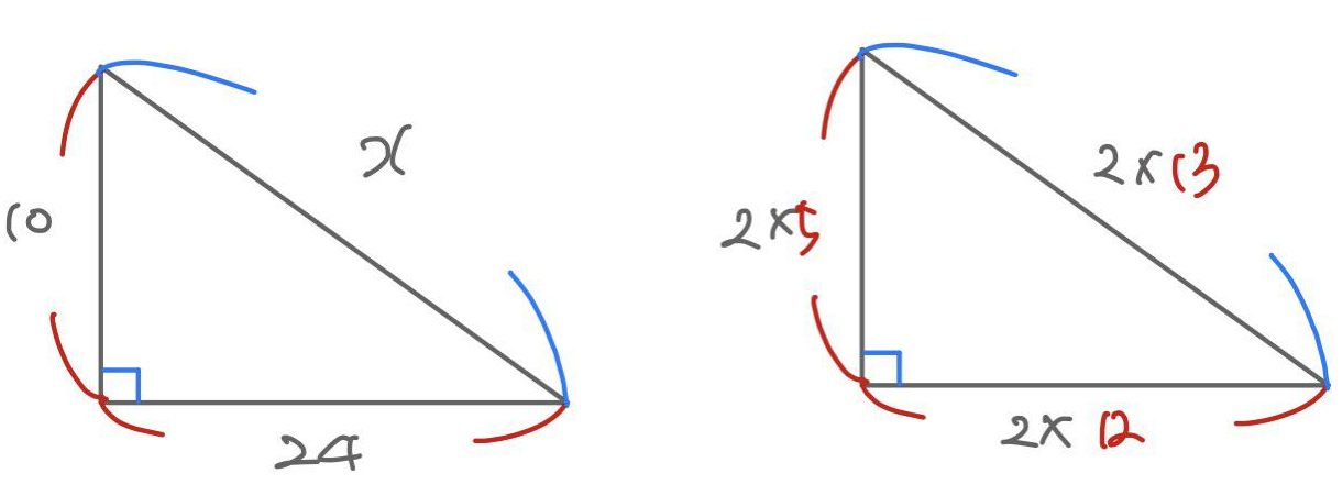 빗변의 길이가 2x13=26인게 바로 보입니다.