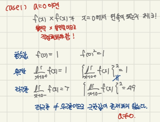 직접 정석대로 좌우극한과 함숫값을