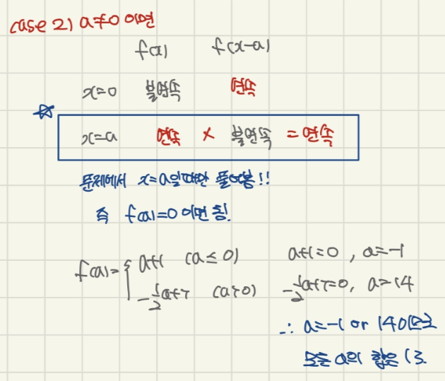 그냥 그래프 그리셔서 a=-1, a=14를