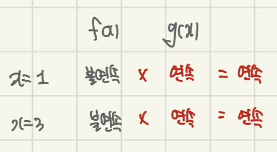 즉 불연속 x 연속 = 연속인 함수를