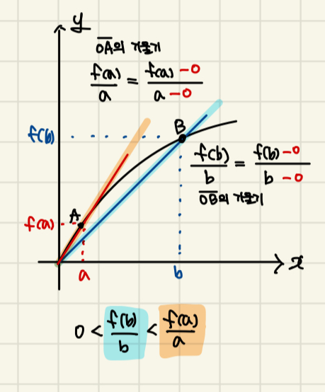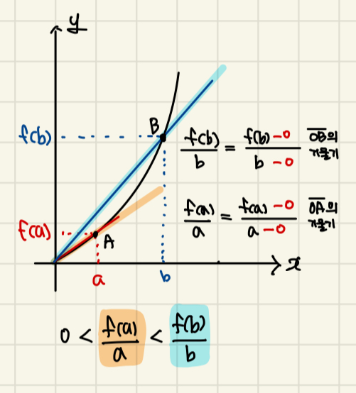 원점을 지나는 다항함수 y=f(x)위의 두 점 A(a, f(a)), B(b, f(b)) (단,0< a<b)에 대하여 ![]() |