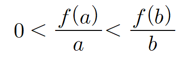 원점을 지나는 다항함수 y=f(x)위의 두 점 A(a, f(a)), B(b, f(b)) (단,0< a<b)에 대하여 ![]() |