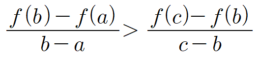곡선 y=f(x)위의 두 점 A(a, f(a)), B(b, f(b)) C(c, (c)) (단, a<b<c)에 대하여 ![]() |