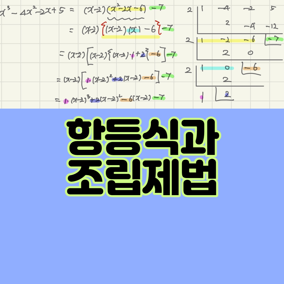 오늘은 항등식 중, 같은 다항식으로 여러 번 나눈 문제들을 조립제법으로 푸는 방법을 익혀보도록 할게요.