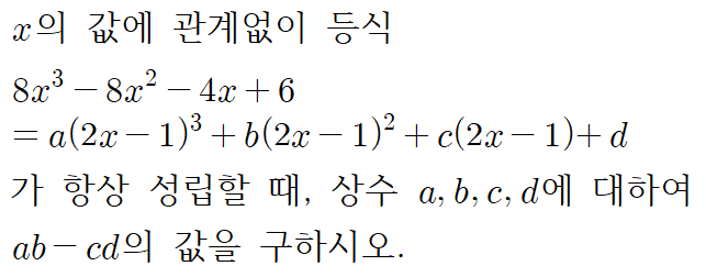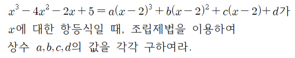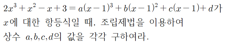 오늘은 항등식 중, 같은 다항식으로 여러 번 나눈 문제들을 조립제법으로 푸는 방법을 익혀보도록 할게요.