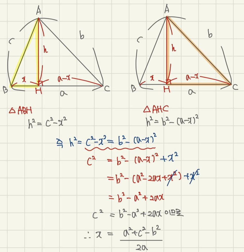 두 직각 삼각형에 각각 피타고라스 정리를 쓸 거에요.