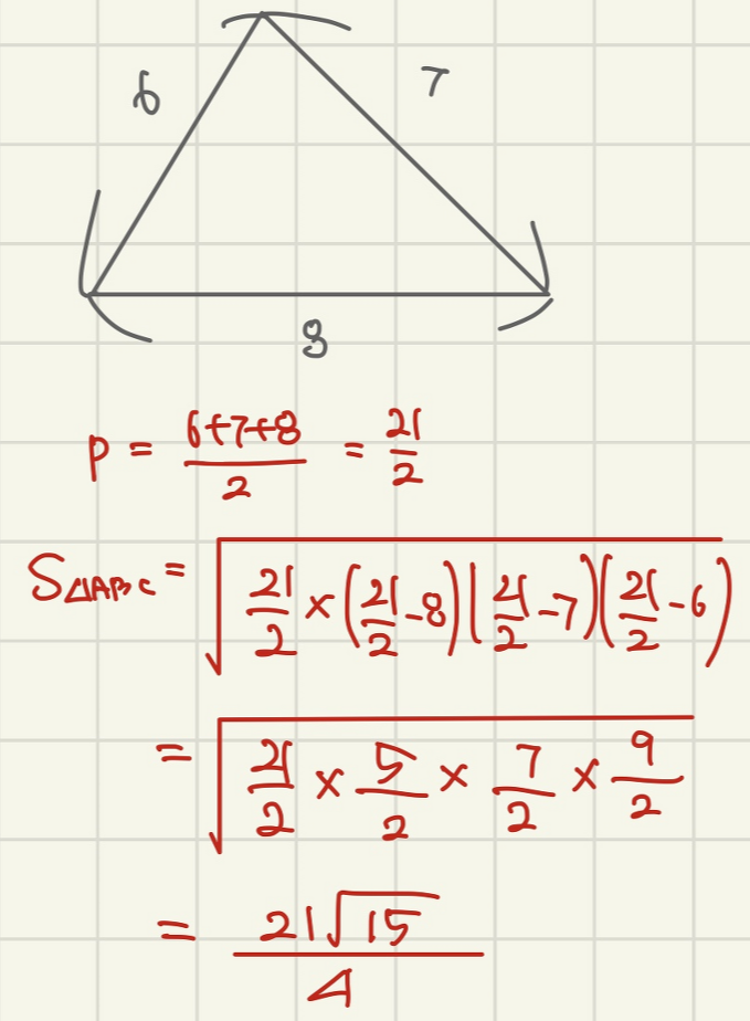 헤론의 공식으로 후딱 풀고 넘어가도록 해요!