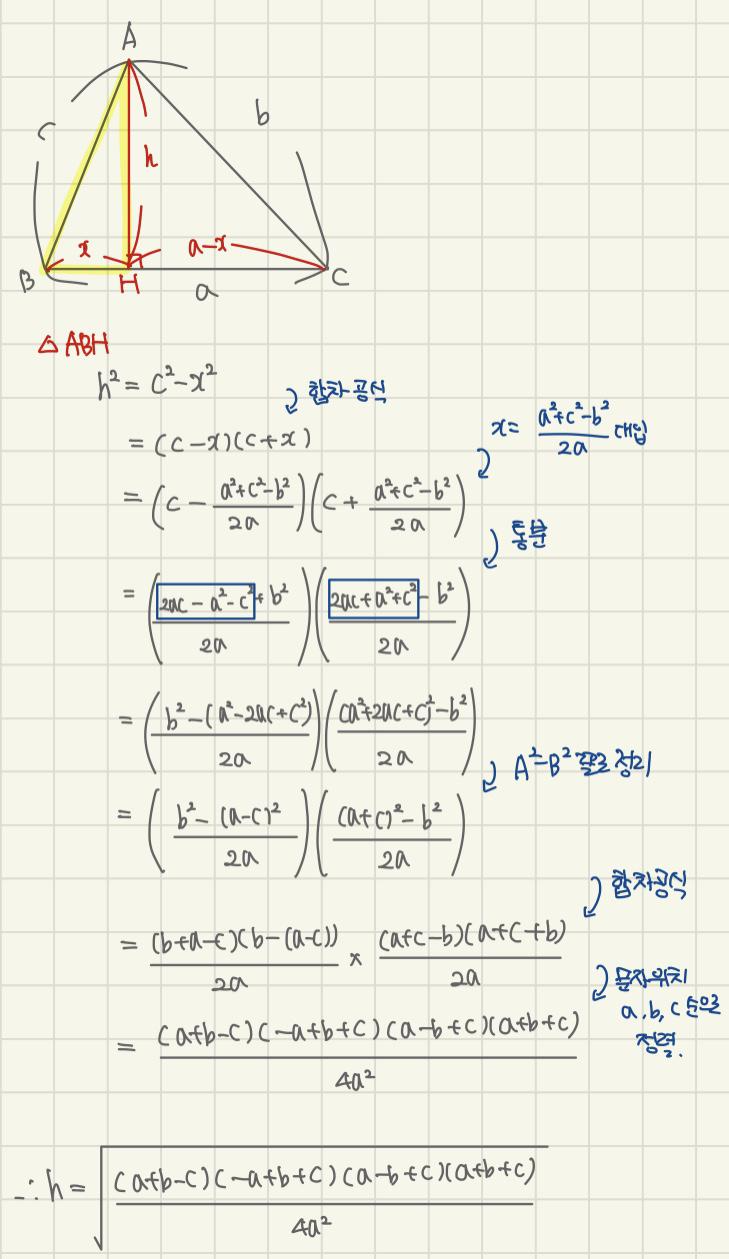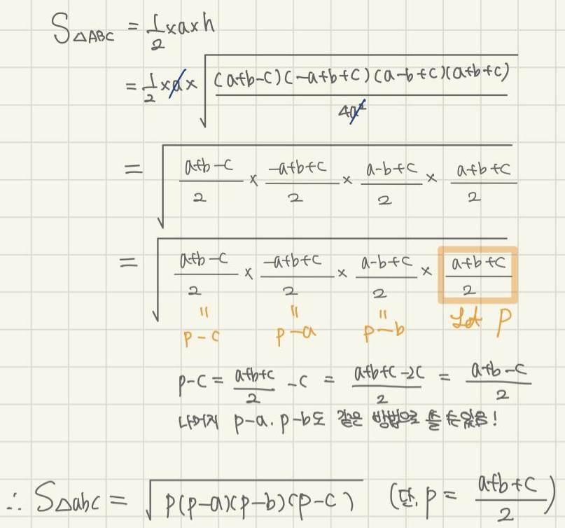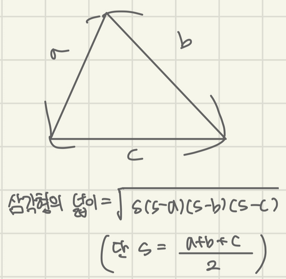 헤론의 공식을 그대로 적용할 수 있습니다.