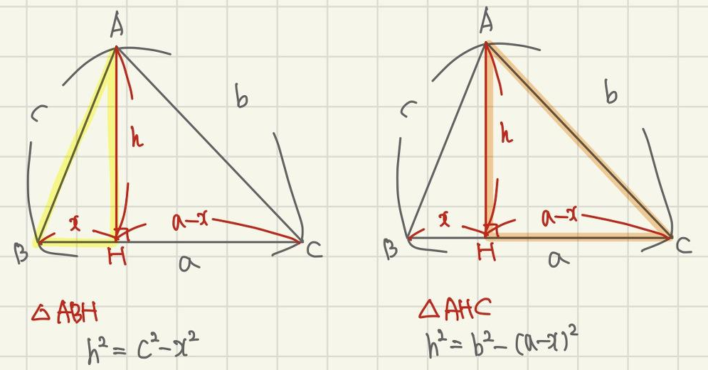 두 직각 삼각형에 각각 피타고라스 정리를 쓸 거에요.