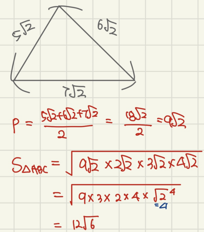세 변의 길이가 각각 5√2, 6√2, 7√2인