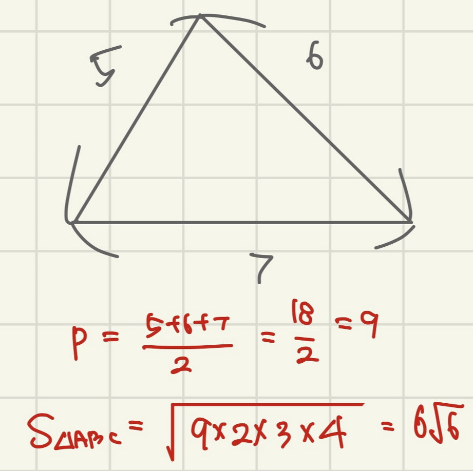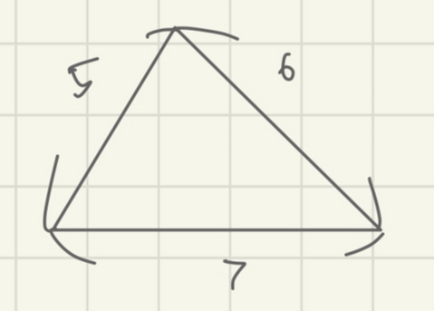 세 변의 길이가 5,6,7인